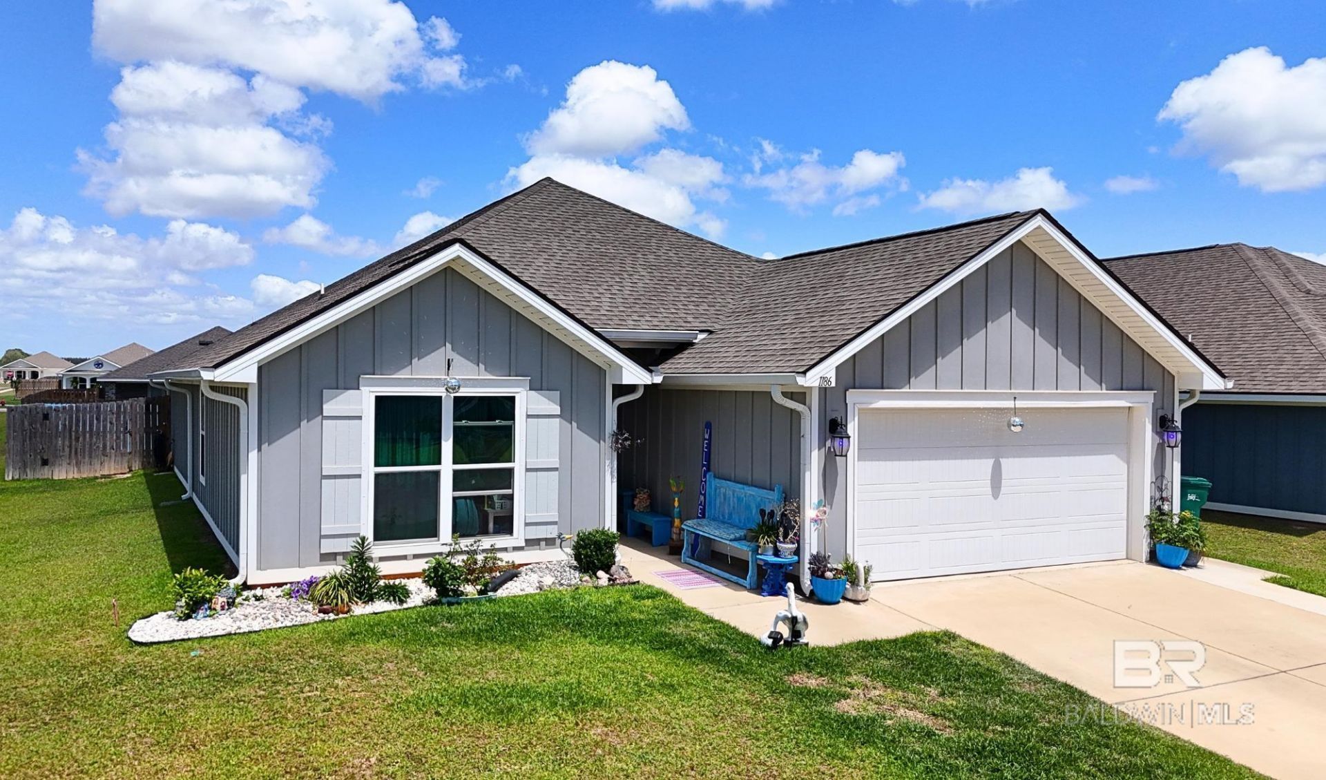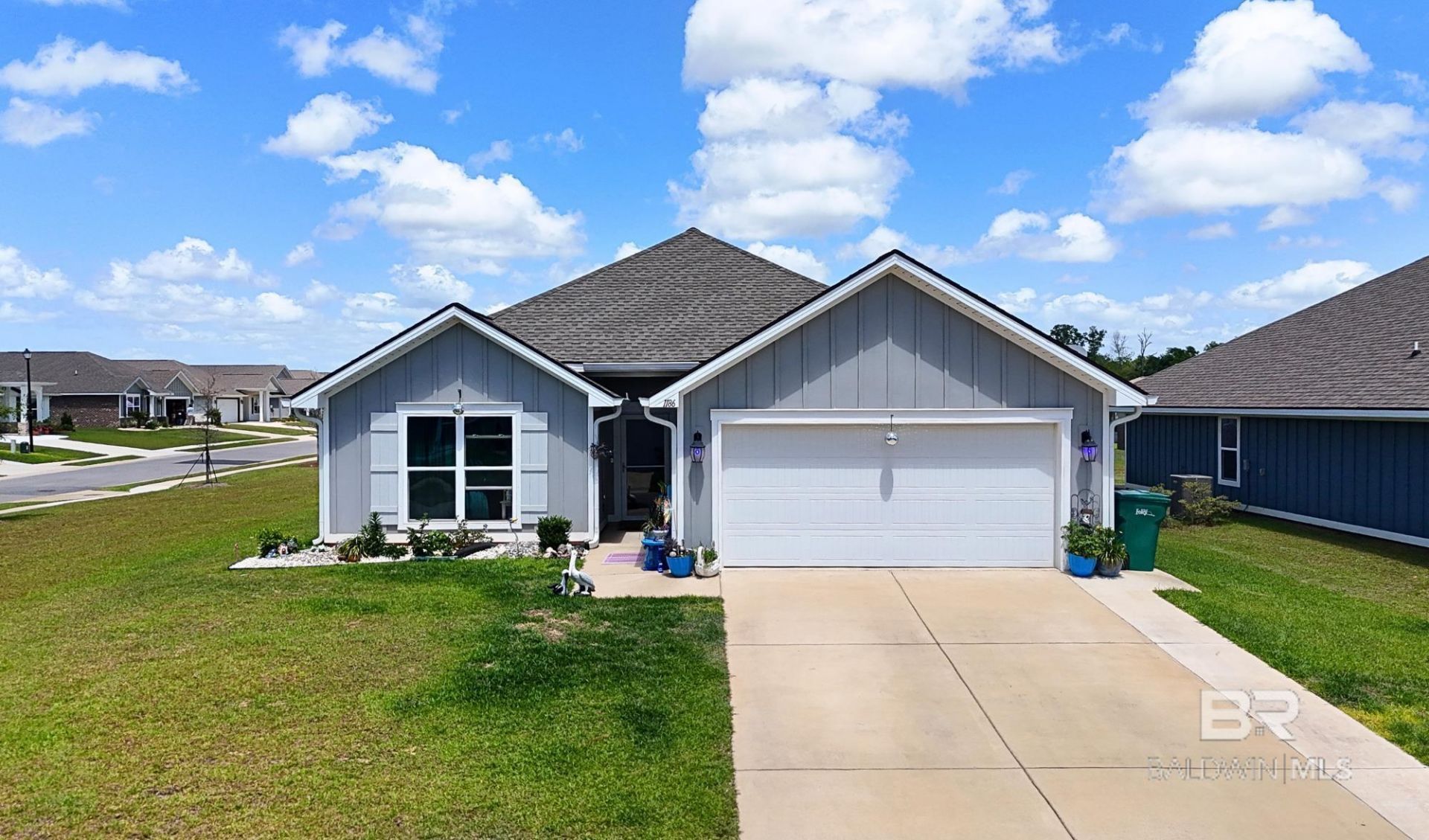 Don't miss out on this corner-lot, 4BED/3BA (Rushmore Plan- Truland built) property, built in 2022 and featuring many seller-completed custom upgrades- this is a great opportunity to buy a GOLD Fortified, move-in ready home that offers easy living in the Rosewood at Arbor Walk subdivision, just minutes away from nearby dining, entertainment, and schools, and of course, the beautiful beaches of Gulf Shores and Orange Beach. This SMART home features 12'x24' screened-in patio (extension) w/ two ceiling fans, fenced backyard w/ added rear waterspouts, stick-built shed w/ electrical outlets, updated tile/toilets in both guest bathrooms, extra exterior electrical & security lighting, widened driveway, gutters around the home and shed, storm doors at front & patio entrances, granite countertops throughout, EVP flooring throughout, double garage, tall ceilings, and more; enjoy the convenience of hurricane fabric storm protection and a termite bond already in place, as well! The primary suite includes spacious closet, trey ceiling, large shower w/ seat, double granite vanities, and ceramic undermount sinks. The kitchen offers white painted cabinetry, granite countertops (white ornamental), tiled backsplash, stainless steel Samsung appliances, brushed nickel finishes, spacious pantry, and large island w/ stainless-steel sink. Finally, two guest bedrooms are located at the front of the home off the spacious foyer, along with a private 4th bedroom w/ en-suite bathroom featuring upgraded tile, stand-in shower. The Rosewood community offers a pool w/ shaded seating, walking trails throughout, and multiple ponds. Schedule a showing to see this wonderful listing today! *Photography/media reflects condition of property at the time of listing. Buyer to verify all information during due diligence.