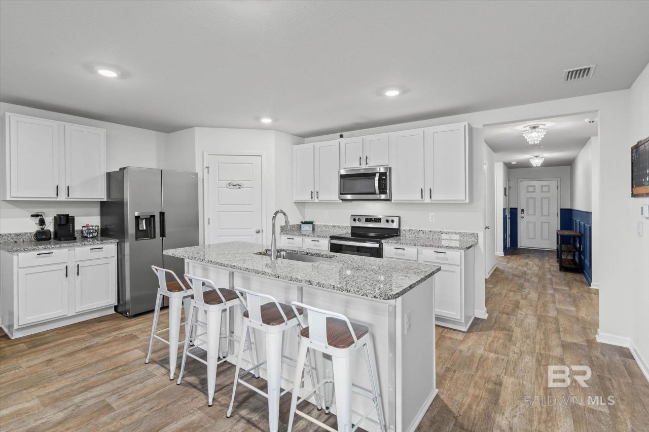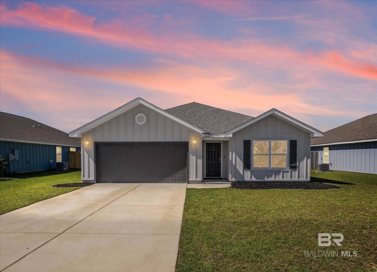 Welcome to Camellia Place, a newer community in the charming town of Silverhill offering a peaceful, rural retreat with convenient access to I-10, Hwy 59, and Baldwin County's beautiful white-sand beaches. This Cali floor plan, built in 2023, features a spacious open-concept design perfect for everyday living and entertaining. Step inside to an inviting foyer accented by a beautiful blue wainscot wall and chandelier lighting that creates a stunning first impression. The kitchen offers granite countertops, stainless steel appliances, a large pantry, and a center island overlooking the family room.The primary suite includes a double vanity with granite countertops, separate shower, soaking tub, and large walk-in closet. A serene green accent wall above the tub adds a relaxing spa-like touch to your retreat. Refrigerator, washer, and dryer remain with the home. Additional features include Energy Star rated double-pane windows, 14 SEER Carrier heat pump, thermal doors, and Home is Connected® Smart Home technology. The exterior showcases Hardie Board and Batten siding and an attached two-car garage. Built toward Gold FORTIFIED??? certification.Enjoy the balance of small-town living with proximity to shopping, dining, and all Baldwin County attractions.Buyer to verify all information during due diligence. Buyer to verify all information during due diligence.