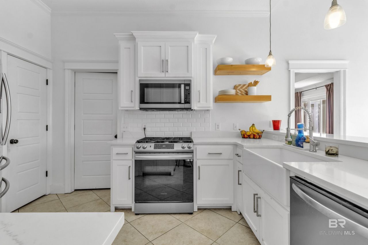 Welcome to this exceptional 5-bedroom, 3-bathroom home offering 2,851 square feet of beautifully updated living space in Terry Cove community of Orange Beach. Designed for both comfort and functionality, this home features a renovated kitchen with custom floating shelves, stainless steel appliances, and an oversized pantry/appliance closet providing incredible storage. The spacious, open-concept living area for entertaining and includes custom built-ins, wood burning fireplace and abundant natural light. The primary suite is a true retreat with a stunning new vanity and luxurious soaker tub, while the additional bathrooms have also been thoughtfully updated. LVP flooring runs throughout the bedrooms, complemented by tile in all wet areas for easy maintenance. Owners have added a separate office or fitness space, for today's flexible lifestyle, along with tons of storage throughout the home. Outdoor living shines here with ample covered and open-air spaces, a fully fenced yard, and a FORTIFIED metal roof for peace of mind. Located in the amenity-rich Terry Cove community, residents enjoy access to an outdoor pool, tennis and basketball courts, playground, boat/RV storage, and a private boat launch. Situated in the heart of Orange Beach, this golf-cart-friendly neighborhood puts you just a few short minutes to the white sandy beaches, local restaurants, and grocery stores. This is an incredible value and rare opportunity to own a spacious, move-in-ready home in one of Orange Beach's most convenient and sought-after locations. Buyer to verify all information during due diligence.