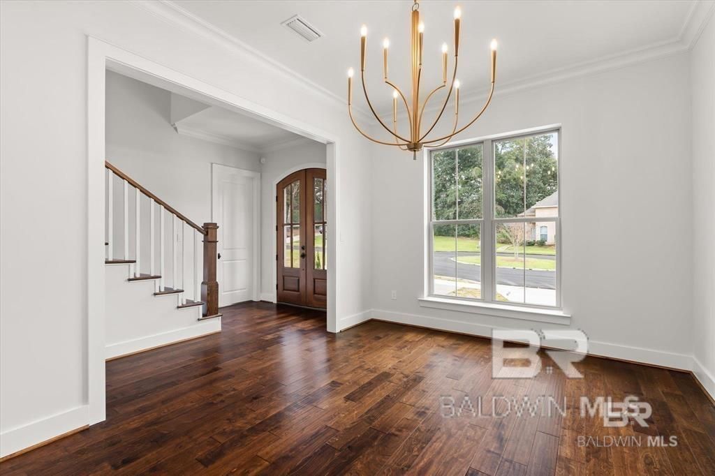 Beautiful new construction in Springhill near the University of South Alabama campus. Tucked away quietly at the end of a cul de sac in the back of the well established Hilltop neighborhood. Gorgeous hardwood floors, wood staircase, pretty backsplash, high smooth ceilings, crown molding, open kitchen and living space, formal dining area, beautiful quartz countertops walk in pantry, high end appliances and a gourmet kitchen overlooking the family room with gas log fireplace. Master suite down stairs plus an extra bedroom or office and full bathroom. Upstairs has 2 large bedrooms with Jack & Jill bath plus an extra family room or flex space. Both upstairs bedrooms have walk in closets. Huge covered deck with wooden ceiling that overlooks a walking trail. Lots of storage space under the house in the back upgraded light fixtures. Built by Bent Willow Designs with all the bells & whistles. The well designed utility room has cabinets, sink and counterspace plus a walk in utility closet or extra walk in pantry. The entire home has soft close drawers and cabinets. Walk in attic space. Built in cabinets with counters in oversized garage. Buyer to verify all information during due diligence.